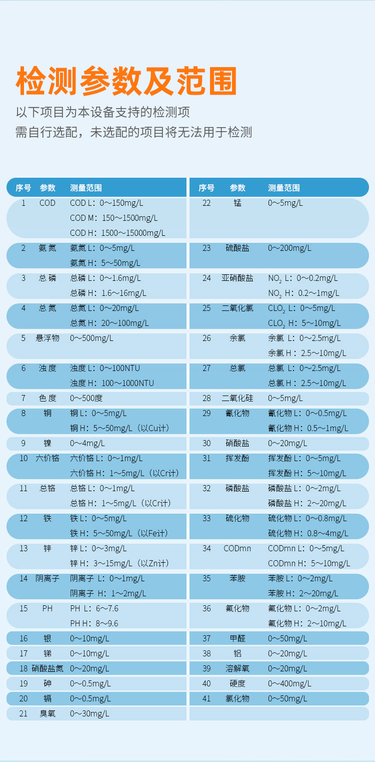 | 測定范圍 | 0-50mg/L(分段測定) |
