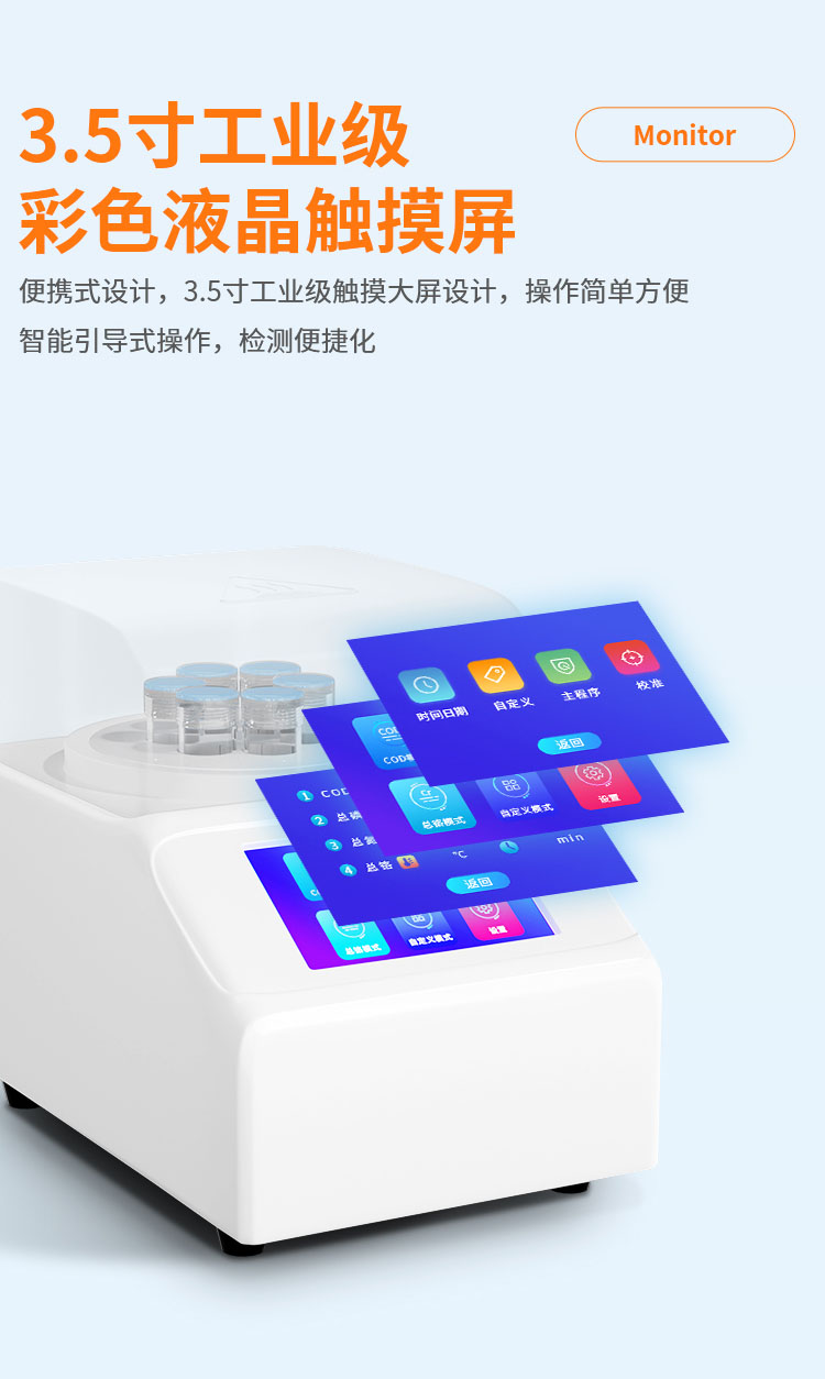 采用消解比色一體管檢測,讓檢測更加簡單、安全。儀器以其外觀設(shè)計小巧、檢測快速、操作簡單、成本低等特點,廣泛應(yīng)用于應(yīng)急監(jiān)測、污水處理、化工、制藥、醫(yī)院廢水、食品、印染等行業(yè)廢水檢測方面,還可以應(yīng)用于科研單位、大中專院校等機構(gòu)的廢水研究使用。